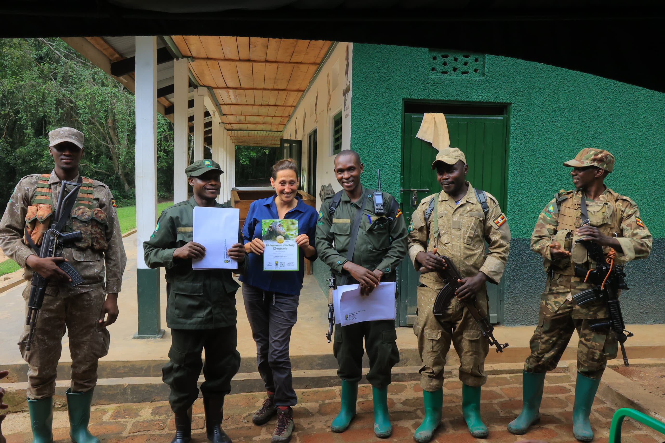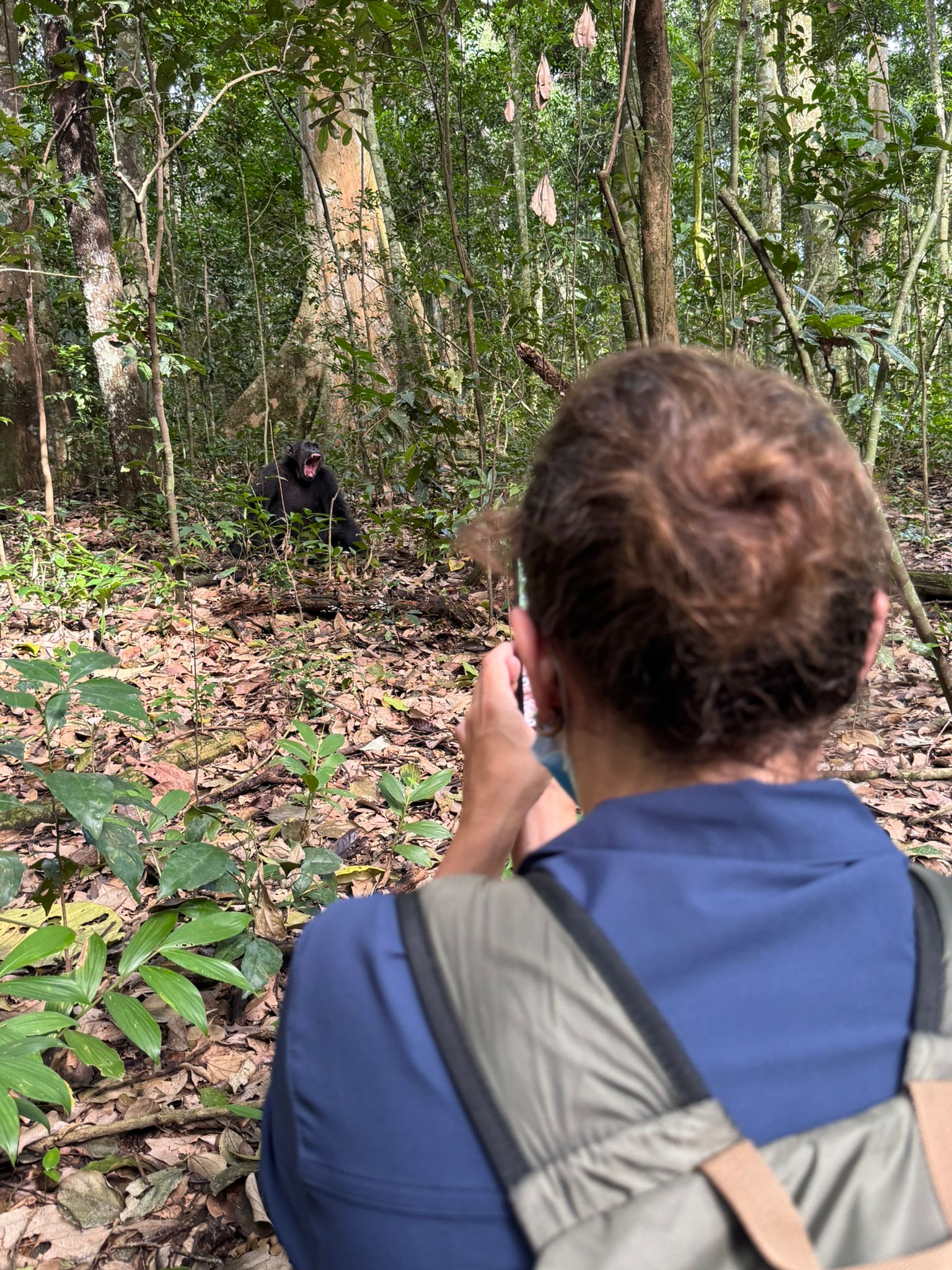 Doch die Höhepunkte unserer Uganda-Reise standen ja noch bevor. Wer nach Uganda reist, will Schimpansen und Gorillas sehen! Wir natürlich auch! Im Kibale National Park war es dann soweit: In kleinen Gruppen, zu Fuß, begleitet durch erfahrene Ranger, durften wir uns in den Lebensraum der Schimpansen wagen. Wir wurden vorher instruiert, wie wir uns zu verhalten haben, um die Tiere möglichst nicht zu stören. Ich war beeindruckt davon, wie nachdrücklich hier darauf geachtet wird, dass sich Besucher respektvoll verhalten. Zu den Tieren darf man nur mit Masken und mit einem gebührenden Abstand. Dass die Tiere selbst sich auch schon mal etwas näher an einen heranwagen, macht das Besondere an diesem Erlebnis aus. Schimpansen sind uns Menschen genetisch so ähnlich, dass unsere Gene sich nur um ca. 1,5% unterscheiden. Diese Tiere in der Natur beobachten zu können und zu sehen, wie sie miteinander interagieren, war für mich ein zutiefst emotionales Erlebnis, das ich sicherlich nie mehr vergessen werde.