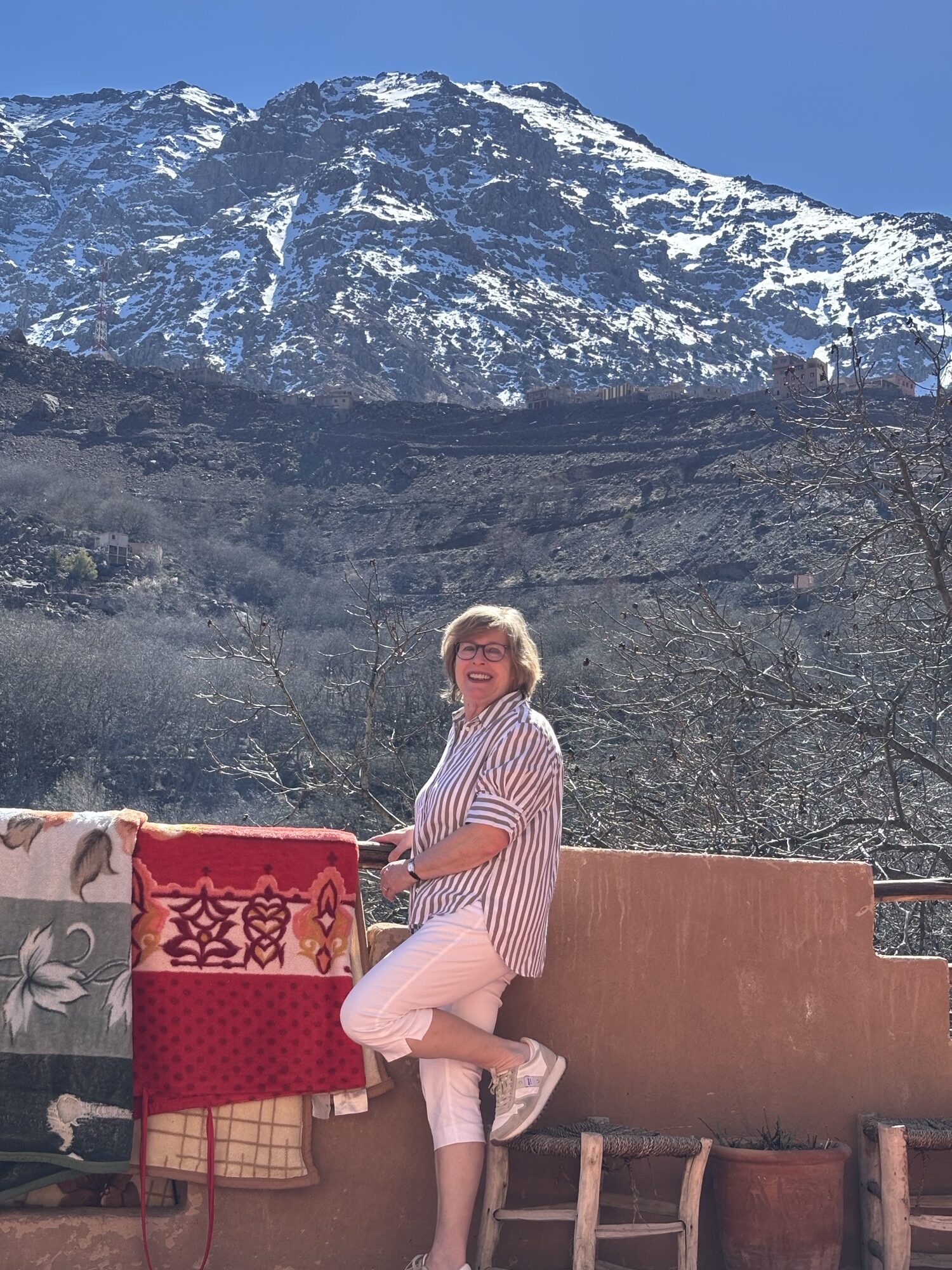 Am nächsten Morgen steigt das Atlas –Gebirge in den blauen Himmel hinein