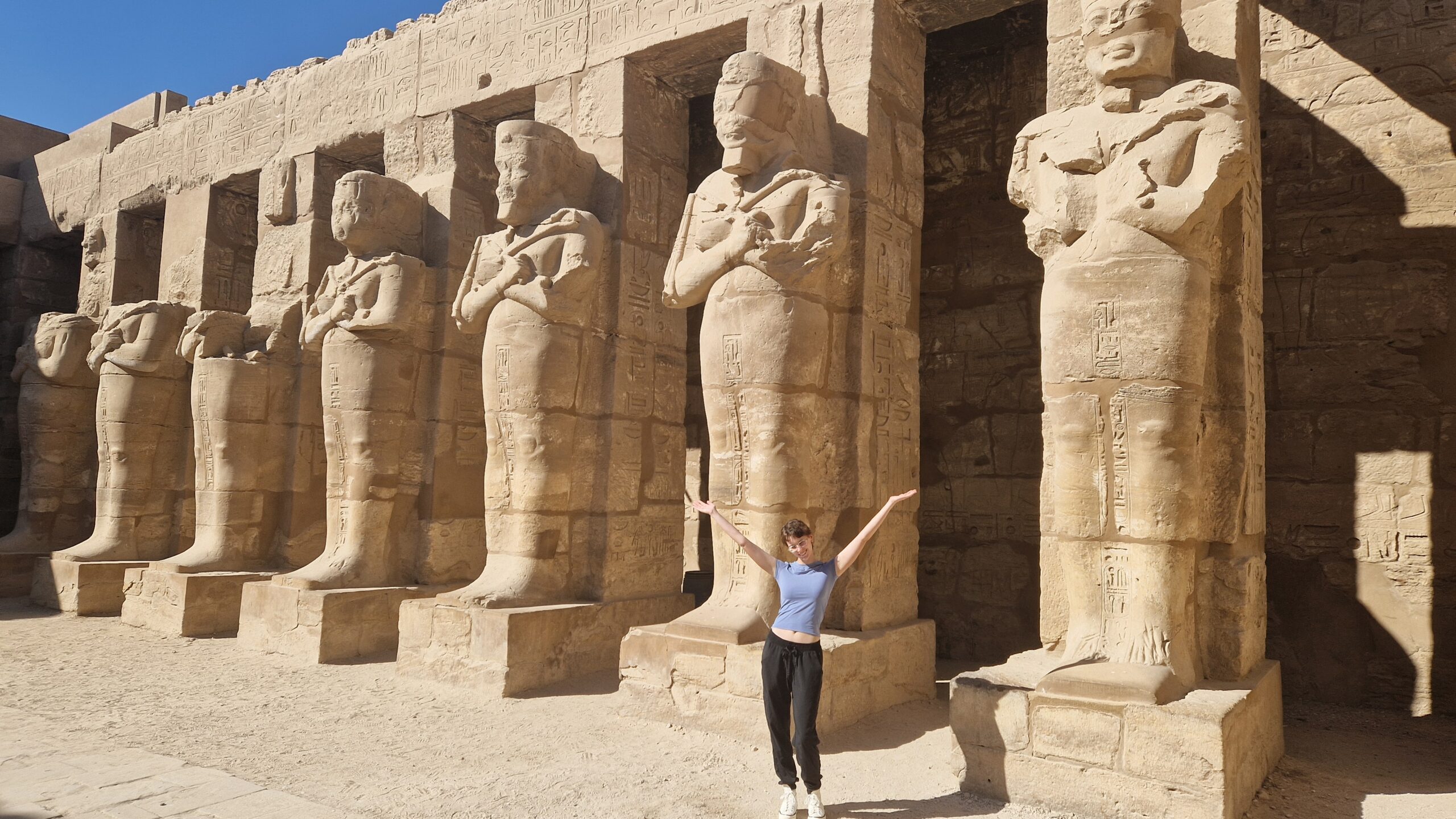 Der zweite Tag stand ganz im Zeichen von Luxor. Wir besuchten früh am Morgen den Karnak-Tempel, ohne die abendliche Lichtshow, aber mit genügend Zeit, die beeindruckenden Säulenhallen auf uns wirken zu lassen. Danach erkundeten wir das Hotel Winter Palace Sofitel und legten einen kleinen Zwischenstopp in einem Café auf einem nahegelegenen Bazar ein. Dort probierten wir typisch ägyptischen Kaffee und ließen uns die Shisha schmecken. Ein kleiner, aber feiner Einblick in die lokale Kultur.