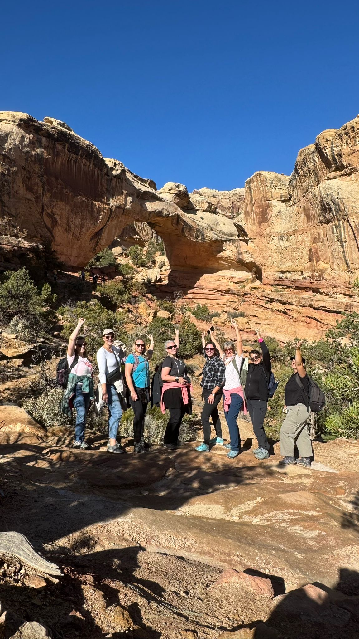 Die Reise startete mit einer Radtour am Snow Canyon, gefolgt von einer Wanderung mit Panoramablick über den Zion Nationalpark. Ein besonderes Erlebnis war die Tour durch die berühmten „Narrows“ im Zion Canyon, bei der die Teilnehmer gut ausgestattet durch den Virgin River wanderten. Auch die Nachtwanderung mit Stargazing-Programm beeindruckte, trotz kühler Temperaturen. Für viele der Expedienten war der Bryce Canyon das landschaftliche Highlight. Die Wanderung durch die bizarren Felsformationen des Nationalparks bleibt unvergessen. Ebenso begeisterte der Besuch des Capitol Reef Nationalparks mit der Wanderung zum Hickman Bridge Trail.